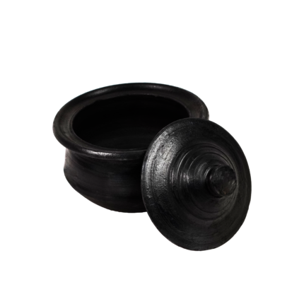 Black clay pot for versatile use. Eco-friendly and easy to clean.