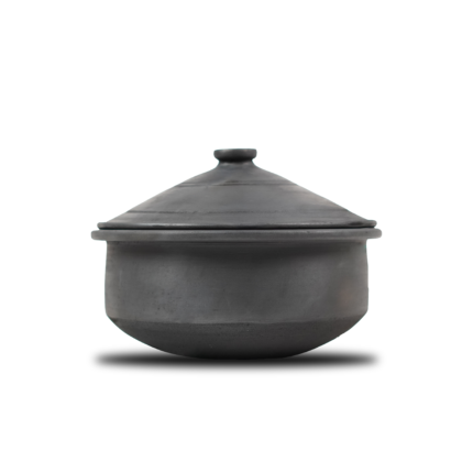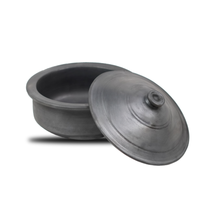 A beautifully handcrafted black clay Patila designed for healthy, slow, and flavour-rich everyday cooking.
